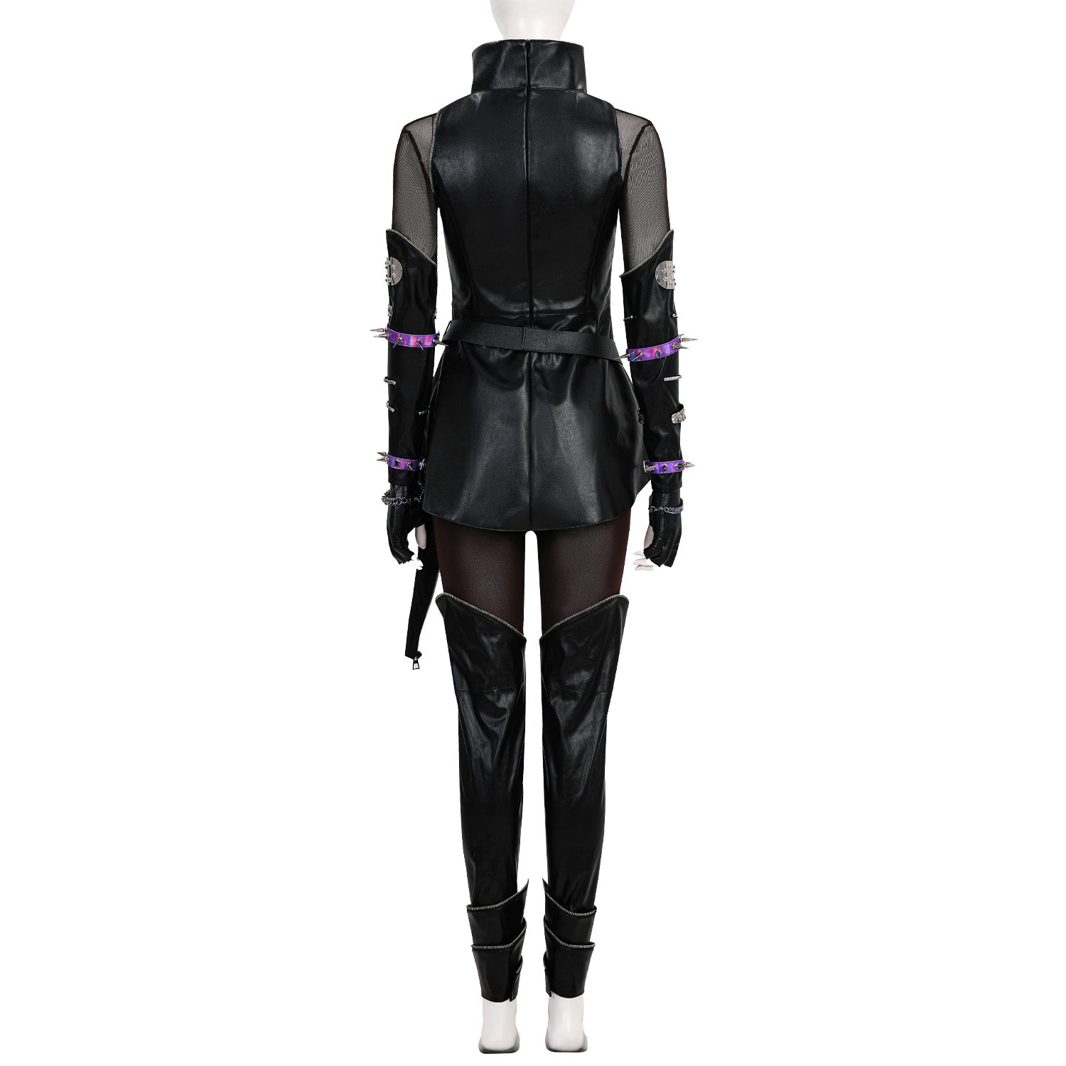 The Demon Hunters Mira Battle Suit Cosplay Costume is the perfect fusion of dark edginess and functional aesthetics. Crafted from eco-friendly black leather with a matte finish, it naturally exudes a mysterious aura. The splicing with double-sided black suede reinforces the jacket’s structured silhouette and highlights its sharp, masculine edge.