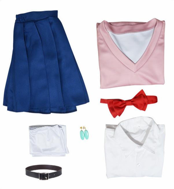 Kleid + Kragendekoration * 1 + Hut * 1 + Rückenschleife * 1 + Schleifendekoration * 1 + Halskette * 1 + Ärmelarm * 2 + Göttliches Auge + Armschutz * 1 + Handschuhe * 1 + Socken * 2 + Requisiten-Taillendekoration * 2 + Ohrclip * 2 + Haardekoration Schmetterling * 1 + Beindekoration Schleife * 2