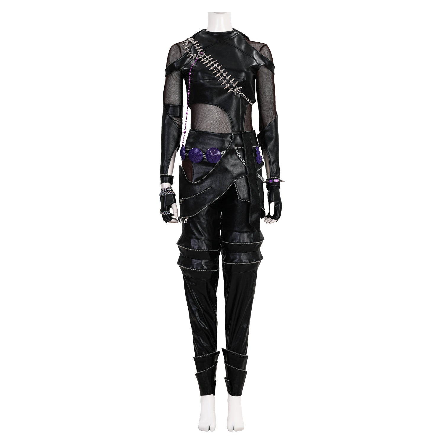 The Demon Hunters Zoey Battle Suit Cosplay Costume is the perfect fusion of dark edginess and functional aesthetics. Crafted from eco-friendly black leather with a matte finish, it naturally exudes a mysterious aura. The splicing with double-sided black suede reinforces the jacket’s structured silhouette and highlights its sharp, masculine edge.